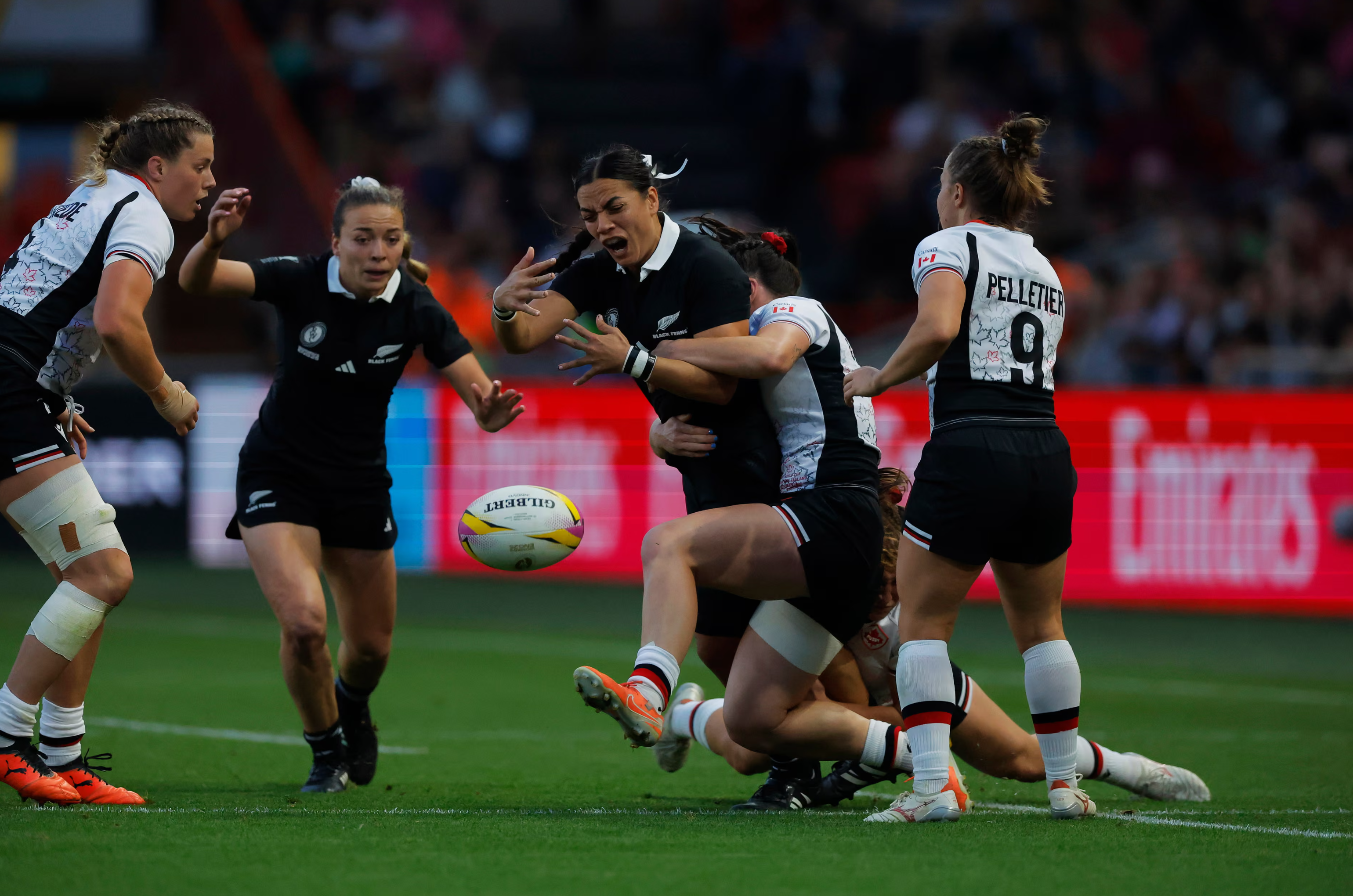 Canada set the tone early, capitalizing on New Zealand’s errors. Within the first 25 minutes, the Canadians surged to a 17–0 lead, with tries from Justine Pelletier, Asia Hogan-Rochester, Florence Symonds, and captain Sophie de Goede. De Goede also contributed with the boot, converting all four tries and adding a penalty. By halftime, Canada led 24–7, having controlled 59% of the possession and making the most of their opportunities.