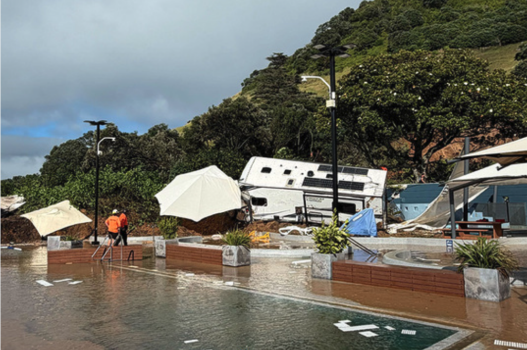 The incident, occurring amidst the tail-end of a violent subtropical storm that has lashed the North Island for 48 hours, has turned one of New Zealand’s most iconic holiday destinations into a harrowing disaster zone.