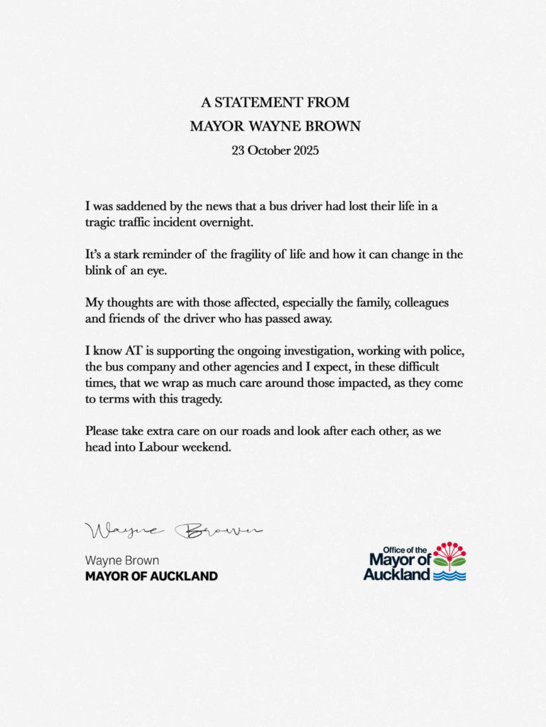Auckland Mayor Wayne Brown expressed profound sadness at the news, stating, “It is a stark reminder of the fragility of life and how it can change in the blink of an eye.” He extended his deepest condolences to “the family, colleagues, and friends of the driver who has passed away,” urging all road users to take extra care as the city heads into the long Labour weekend.