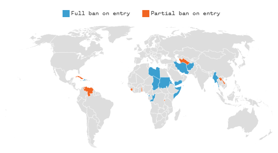 The criteria for inclusion on this potential expanded ban are varied, as outlined in the State Department memo. Some countries were cited for lacking “competent or cooperative central government authority to produce reliable identity documents or other civil documents,” or for suffering from “widespread government fraud.” Others were included due to high numbers of their citizens overstaying visas in the United States.